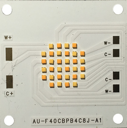 同時,CSP倒裝COB系列配備業內新型超導材料—ALC鋁基板。導熱系數高達120W/M.K,采用無膠工藝制程,無絕緣層隔熱,線路基板一體化,極大降低熱阻。同時,產品的光效也明顯優越于傳統正裝產品,為燈具成本下降奠定了堅實的基礎。