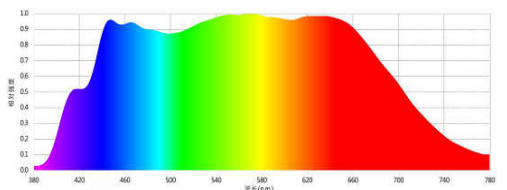 極光光電全光譜是極光公司根據真實太陽光譜, 模擬制作出來的仿太陽光光譜,在剔除和減少其紅外線與紫外線等部分對人體有害的波段 。經過對比(圖 4 和圖 6)發現深圳極光的全光譜與真實太陽光光譜相似度極高。深圳極光光電公司在立足現有產品的基礎上, 通過持續投入新產品的研發中,不斷創新,極光光電工程師們歷時數年,經過無數次的反復試驗,成功研發出全光譜 LED 燈珠,自新產品推出以來,受到不同行業客戶的一致認可和好評, 目前已在多個領域與眾多知名廠商達成戰略合作,同時也積累了豐富的經驗和良好的口碑。